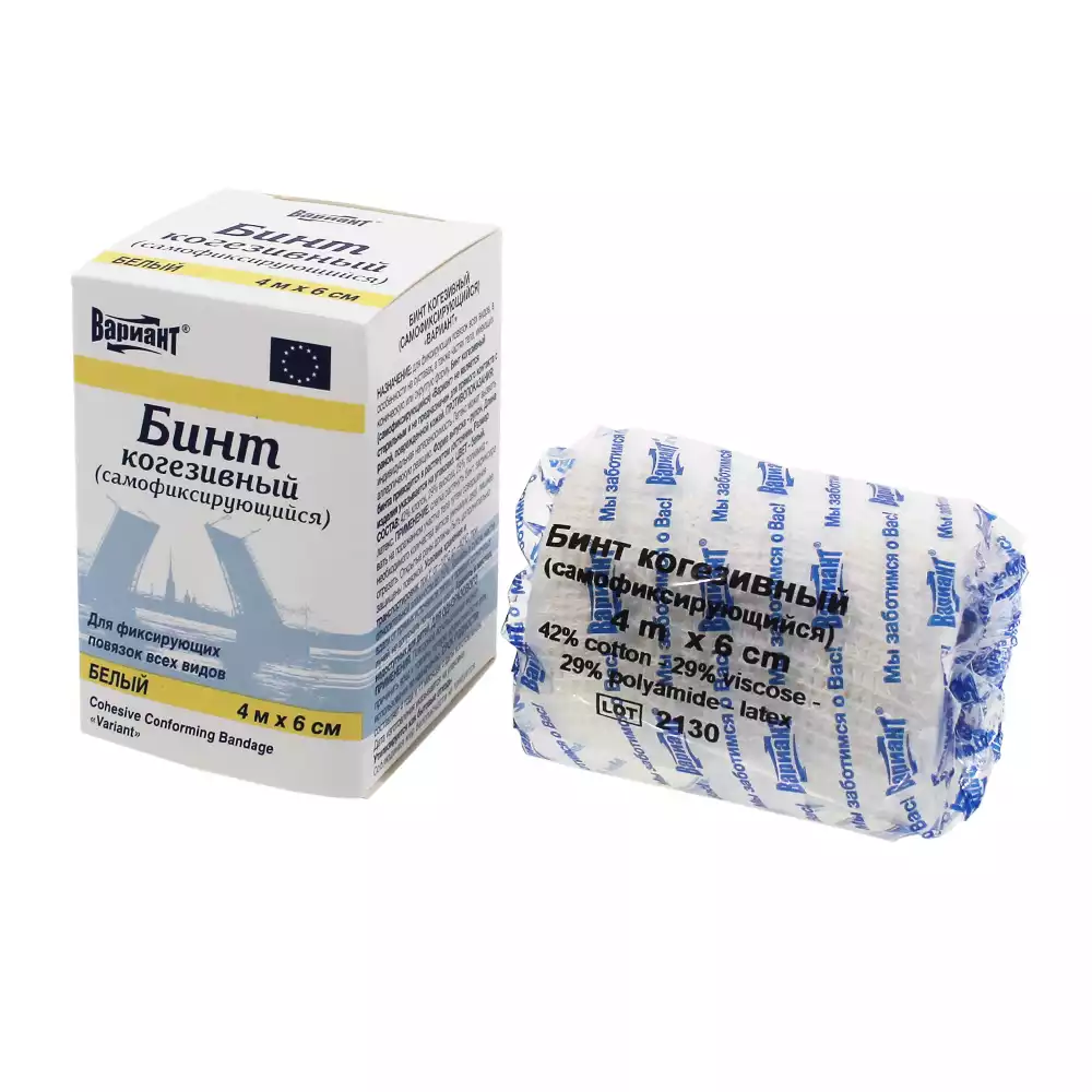 Бинт эластичный "Вариант" cамофиксирующийся когезивный, размер 4м*6см, цвет белыйПревис С.Р.Л. (Италия) (ИТАЛИЯ)