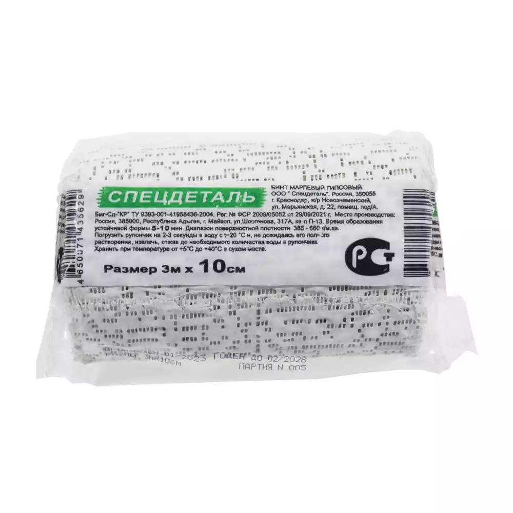 Бинт 3м*10см, гипсовый, время схватывания 5-10 минутСпецдеталь (РОССИЯ)