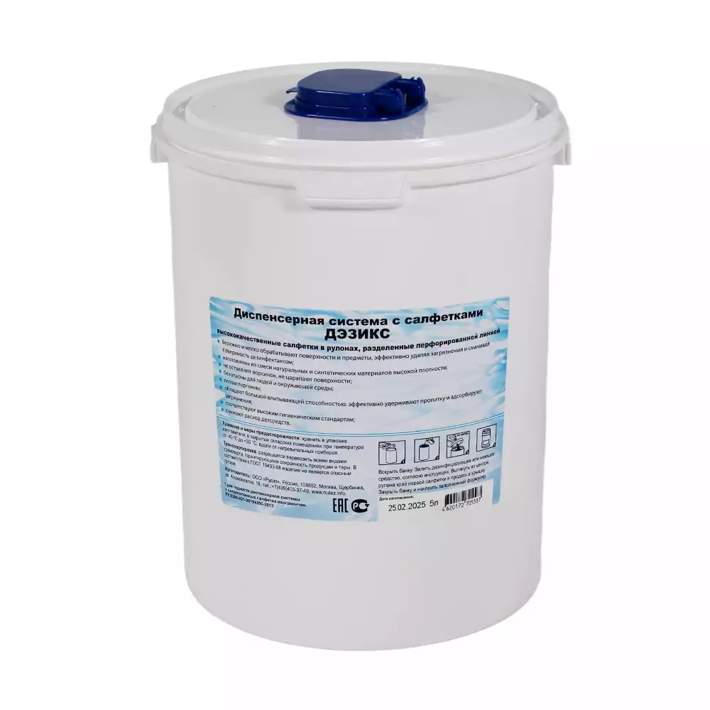 Диспенсер для салфеток Дэзикс 5,0л высокий (емкость и крышка с клапаном) дополнительно этикетка код товара 08000 или 24623Рудез (РОССИЯ)