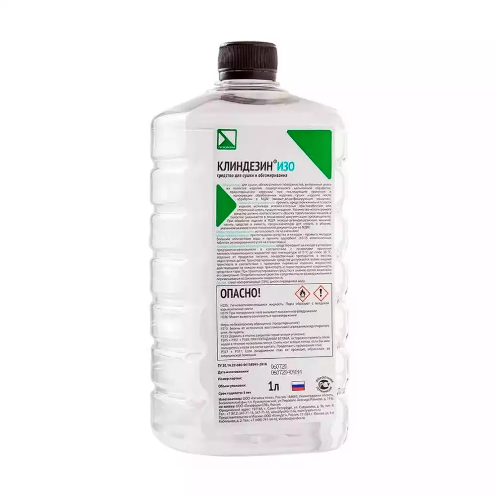 Клиндезин ИЗО объем 1,0л, дезинфцирующий раствор ( 70% изопроптловый спирт)Гигиена Плюс (РОССИЯ)