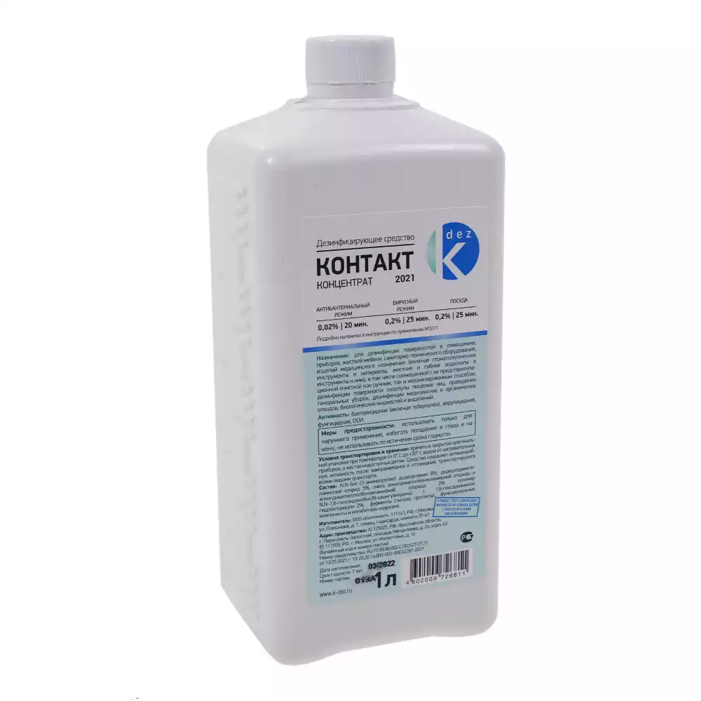Контакт 1,0л дезинфицирующее средство, готовый растворКонтинент (РОССИЯ)