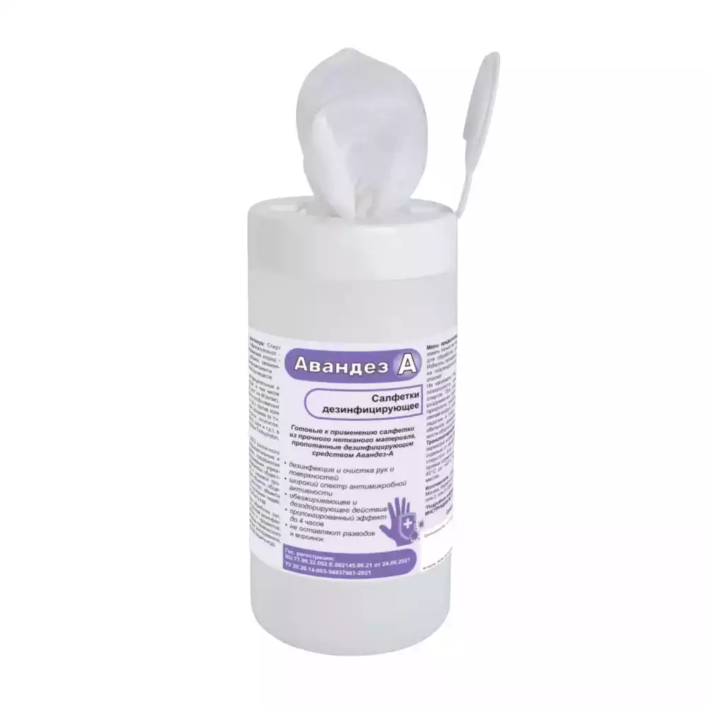 Салфетки "Авандез-А", дезинфицирующие, размер 12*18см, в банке 60шт, готовые к применениюРудез (РОССИЯ)