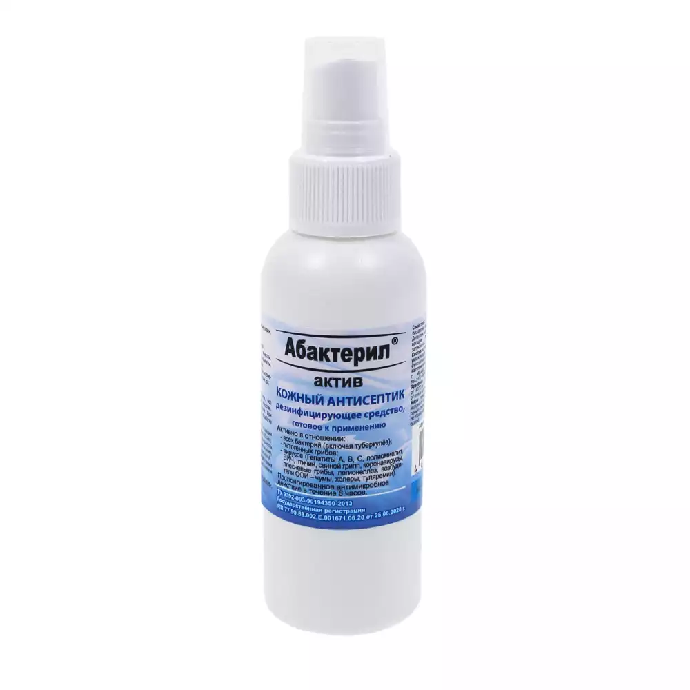 Абактерил - АКТИВ 100мл, кожный антисептик и дезинфектант для поверхностей, спрей, изопропиловый спирт – 64,0%Рудез (РОССИЯ)