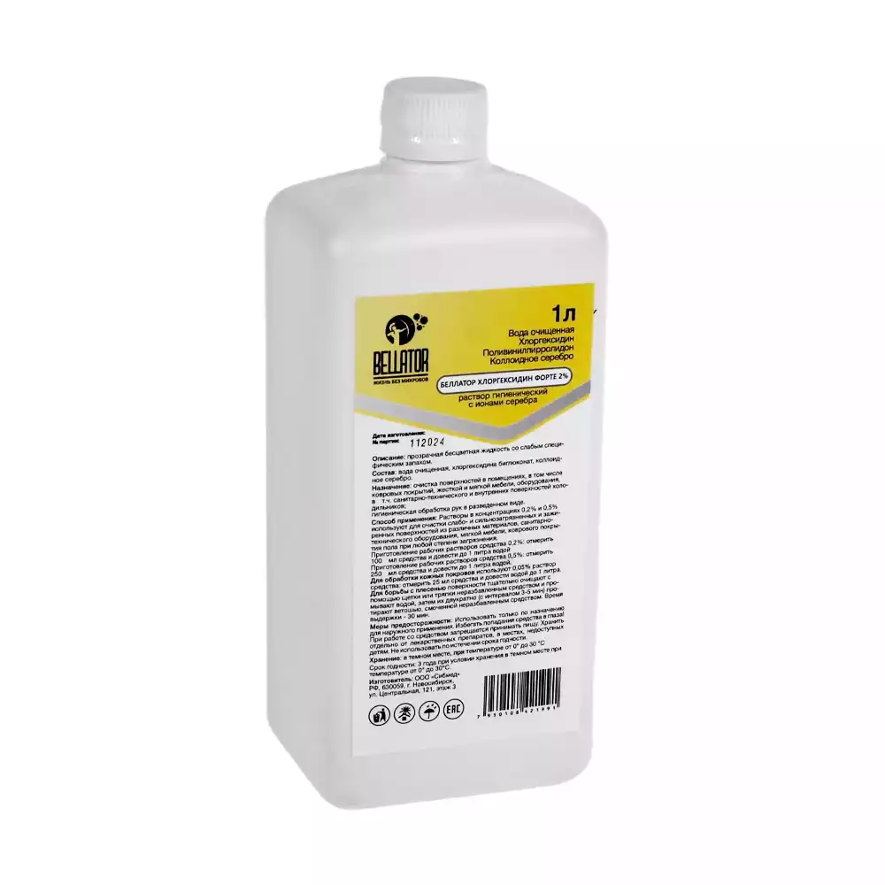 Беллатор-Хлоргексидин Форте 2%, объем 1,0л концентрат, средство дезинфицирующее с антибактериальным эффектомООО Сибмед
