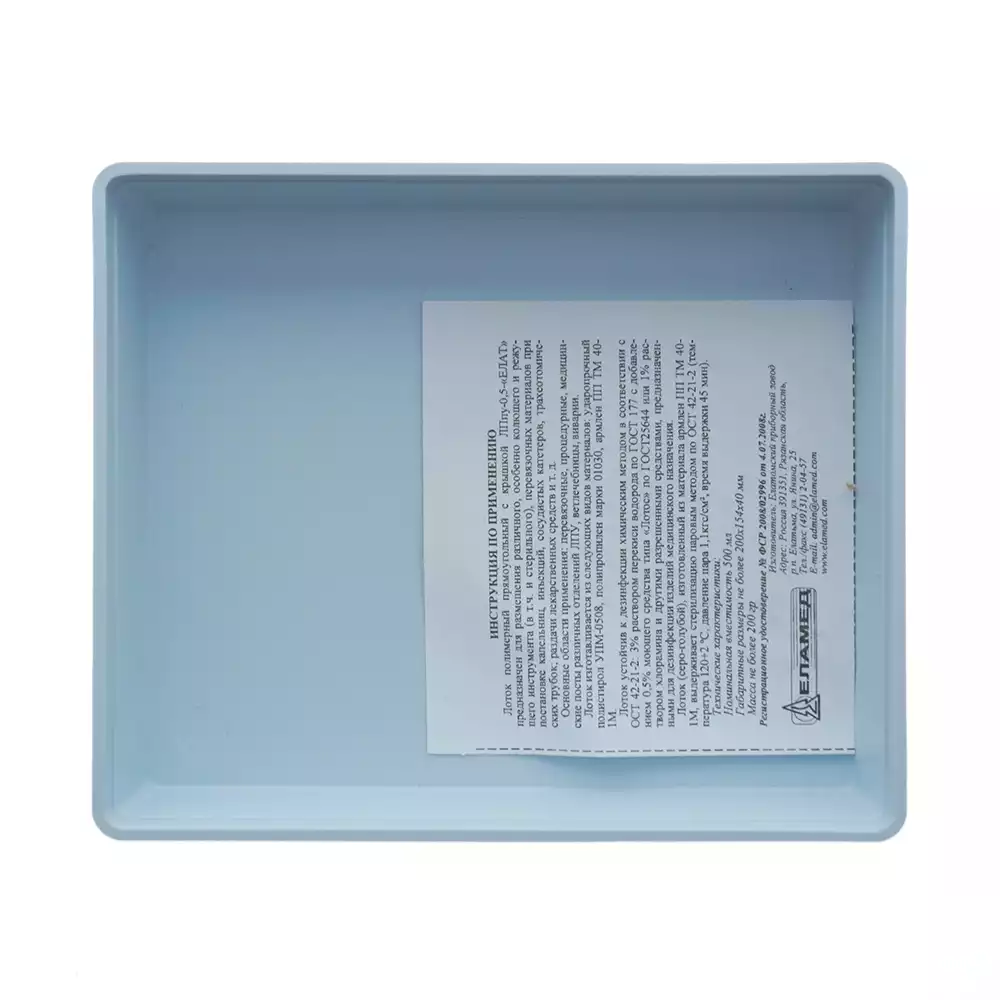 Лоток ЛПпу 0,5А ЕЛАТ прямоугольный, размер 200*154*40мм, с крышкой, автоклавируемый, полимерныйЕПЗ АО (РОССИЯ)