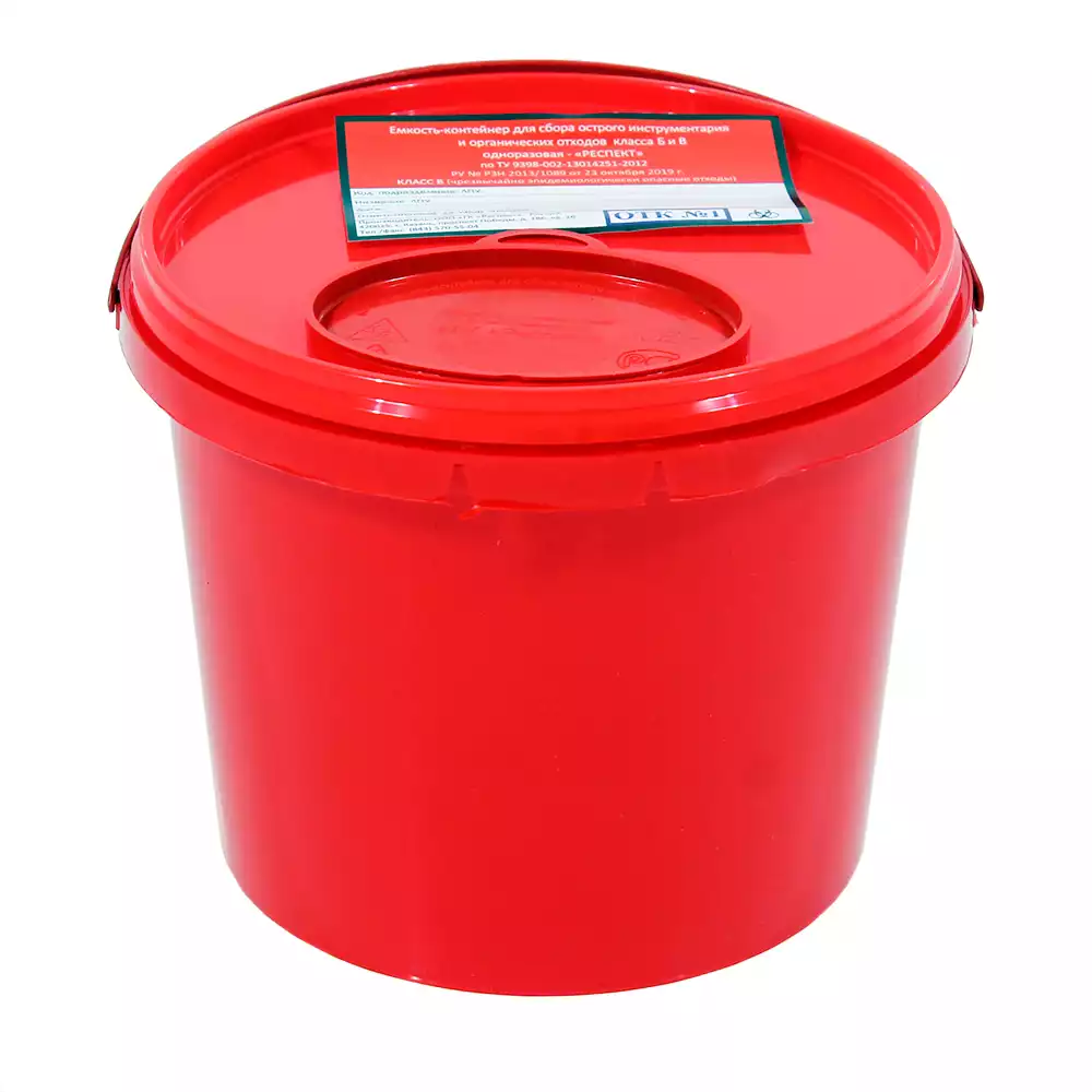 Емкость-контейнер для сбора острого инструментария (с иглосъемником), объем 10,0л (класс Б), желтая, одноразоваяРеспект ГК (РОССИЯ)