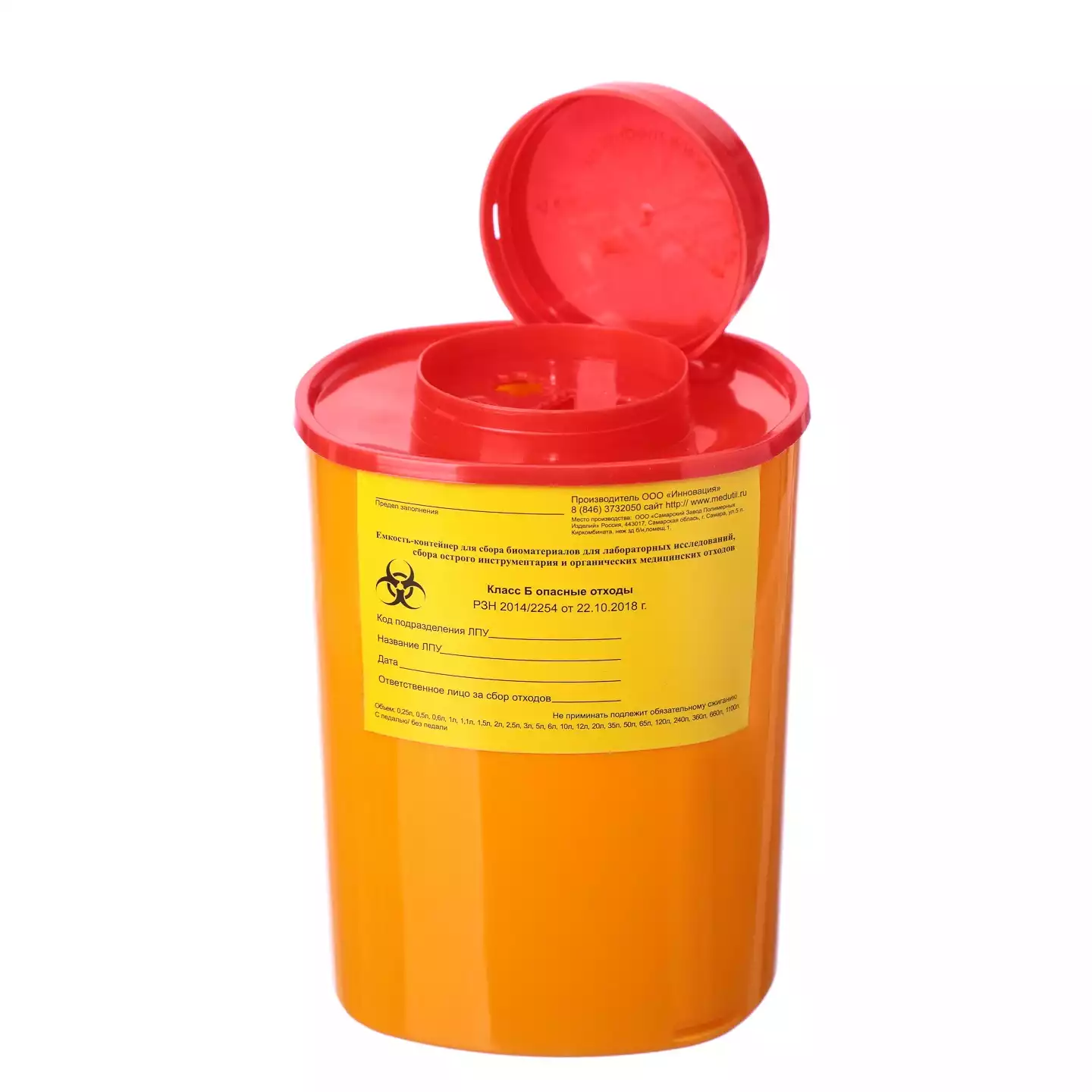 Емкость-контейнер для сбора острого инструментария (с иглосъемником), объем 1,0л (класс Б), желтая, одноразоваяИнновация (РОССИЯ)
