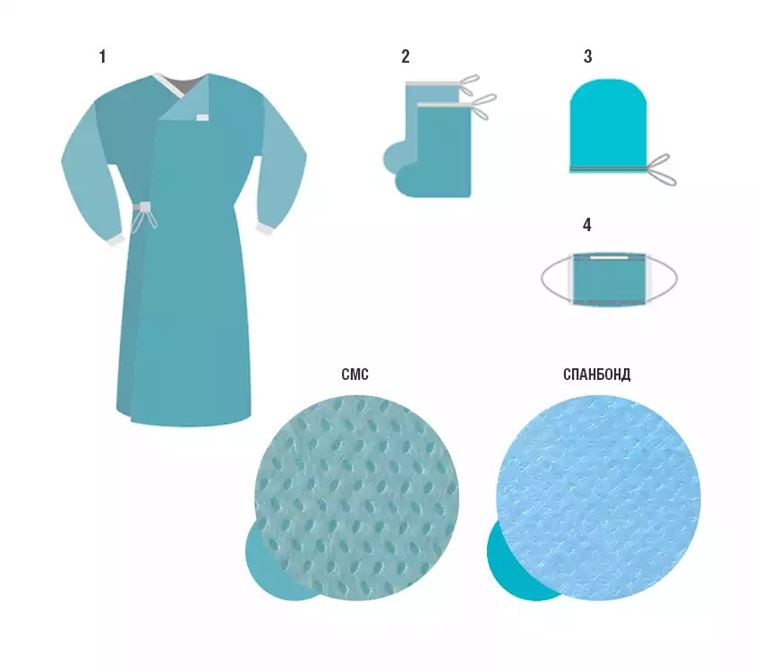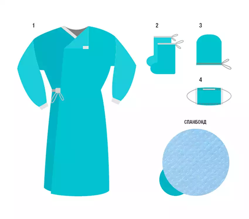 Комплект одежды хирургический для работы с ВИЧ-инфицированными №52, стерильный, Медицина-Айрлайд (РОССИЯ)