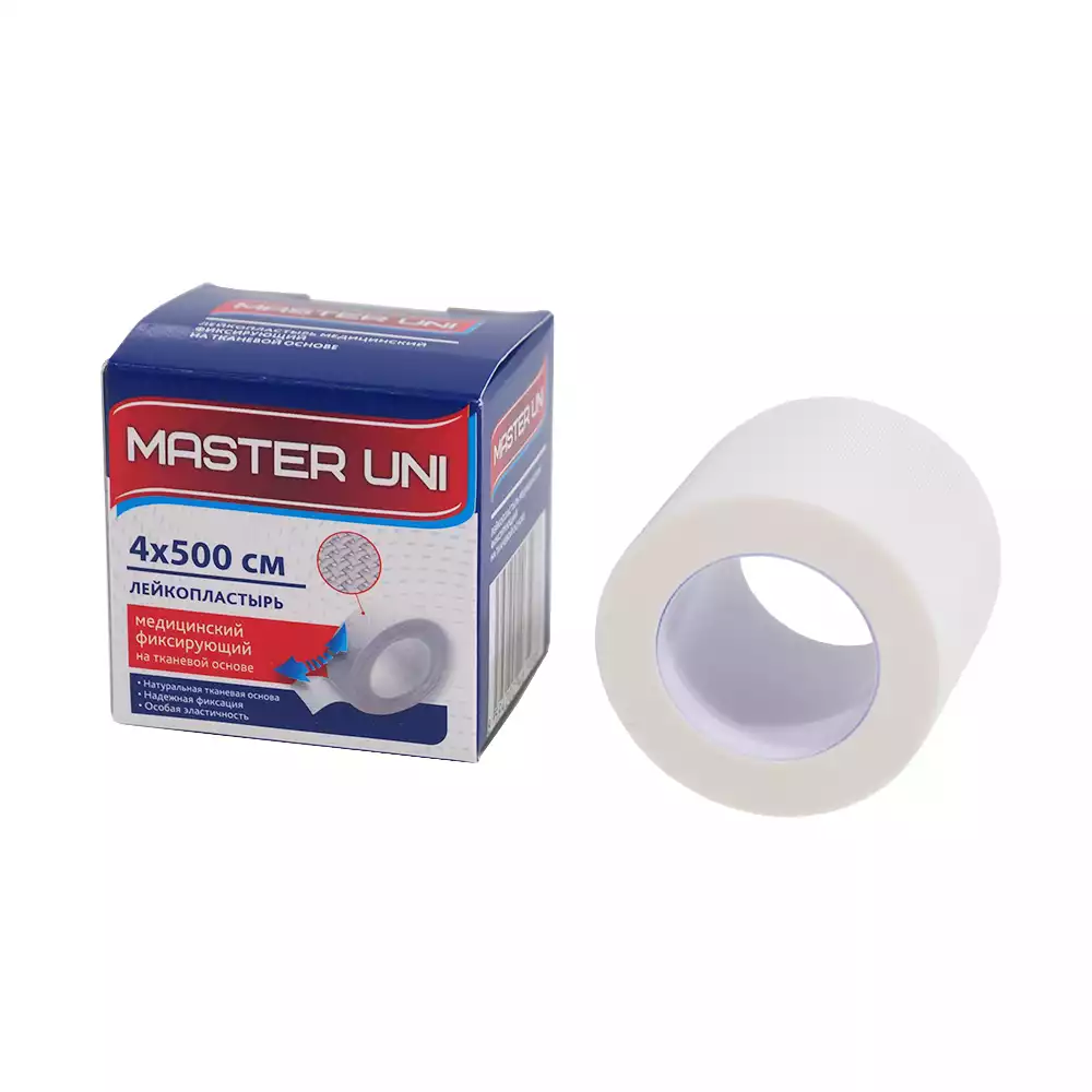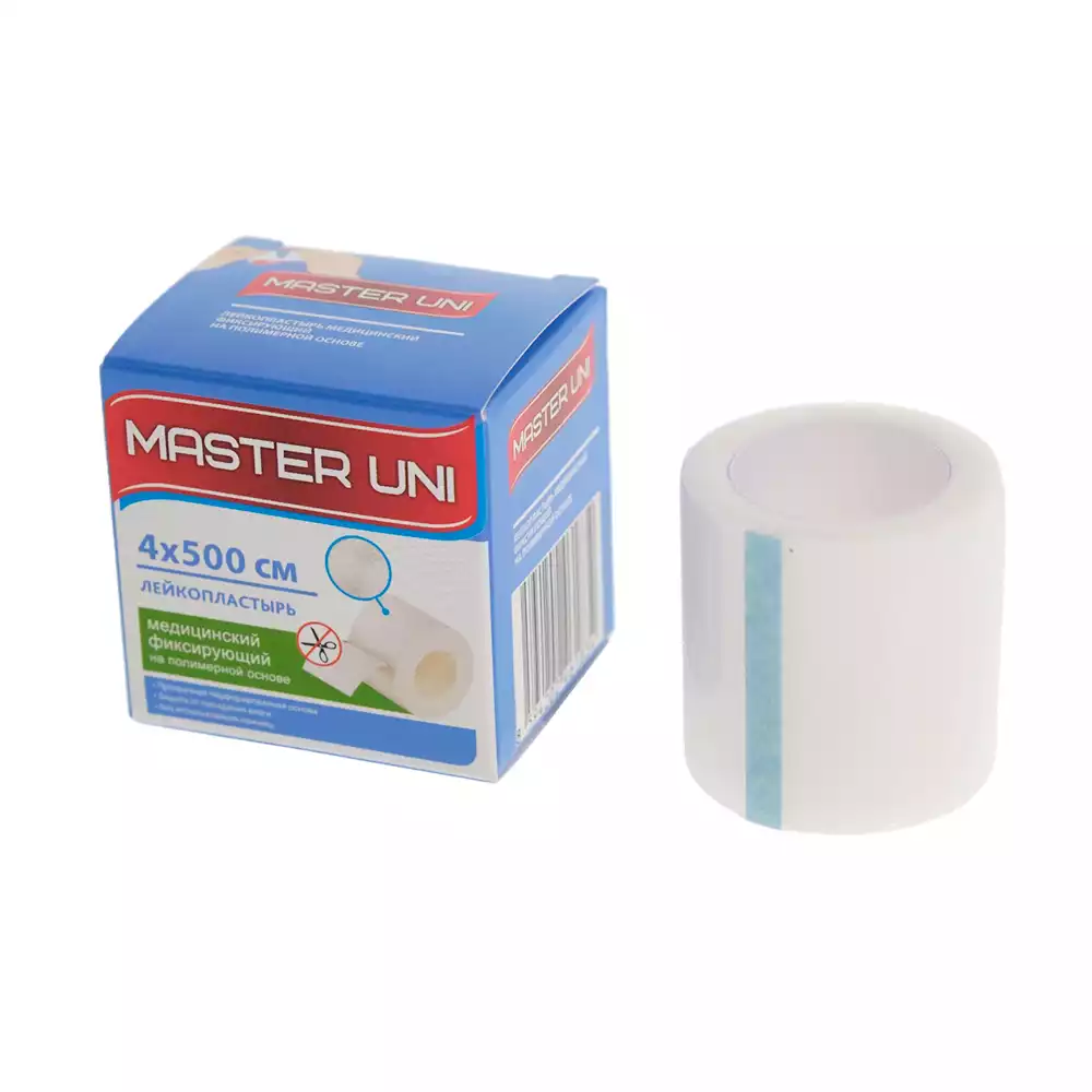 Лейкопластырь Master Uni на полимерной основе,фиксирующий, размер 4см*500см, катушка в картонной коробкеPharmline s.r.o. (РОССИЯ)