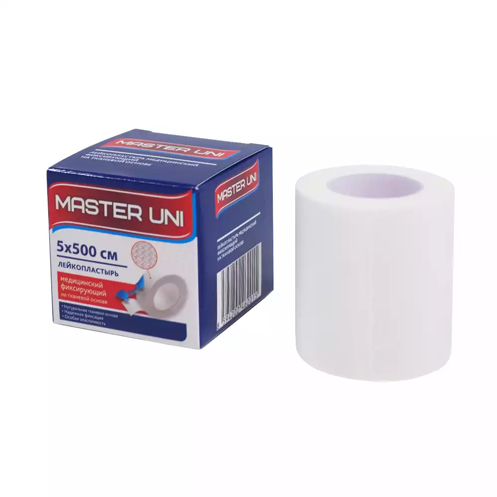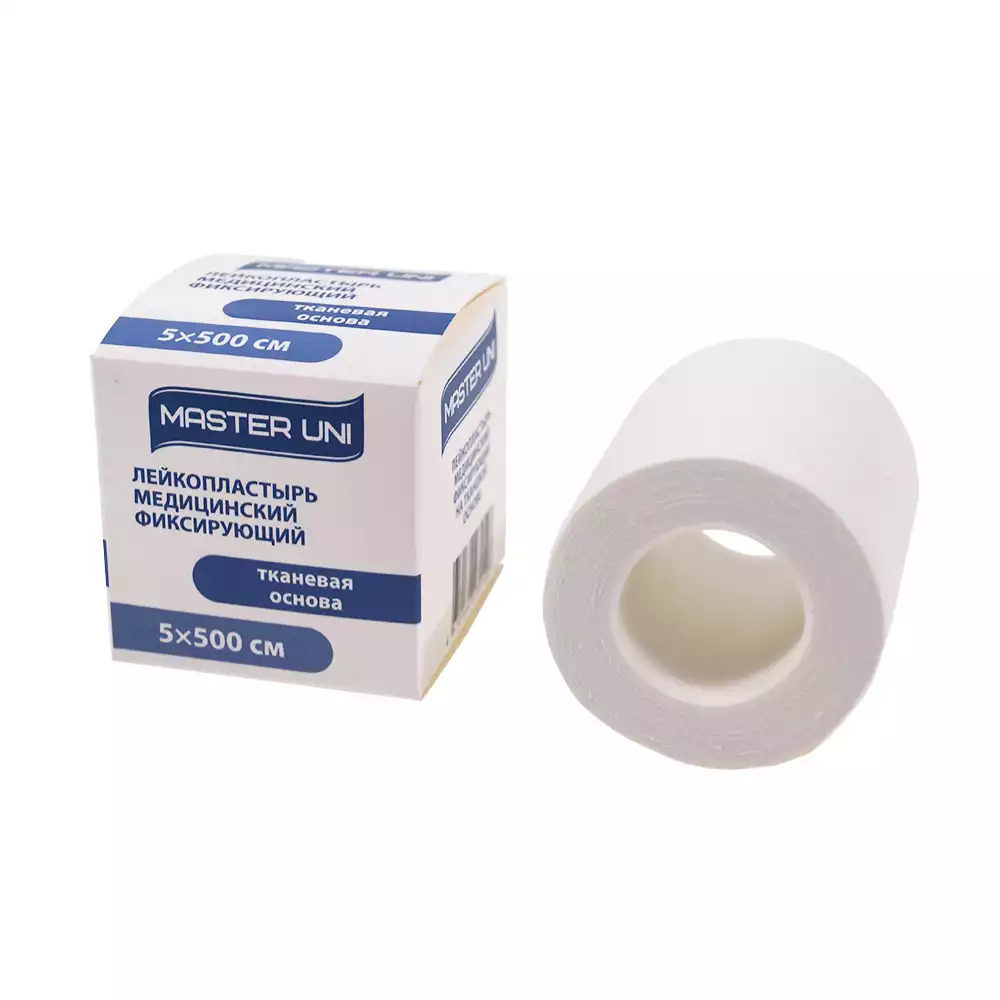 Лейкопластырь Master Uni на тканевой основе (хлопок), размер 5см*500см, катушка в картонной коробкеPharmline s.r.o. (РОССИЯ)