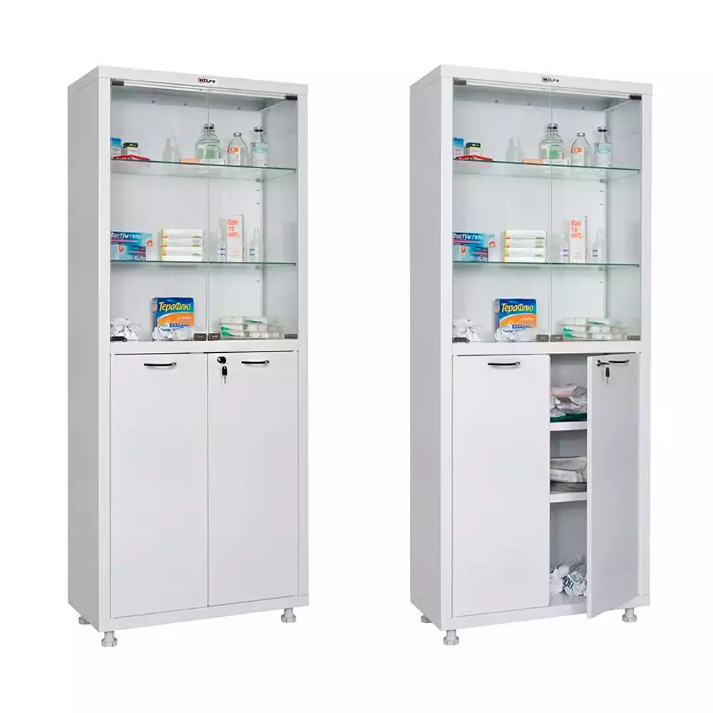 Шкаф медицинский ШМ-2.301-Айболит, металлический, для медикаментов (корпус белый, фасад зеленый), Айболит-2000