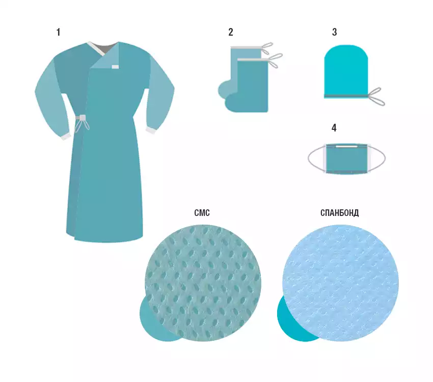 Комплект одежды хирургический КОХ-01 смс 42г/м2, стерильныйИнмедиз (РОССИЯ)