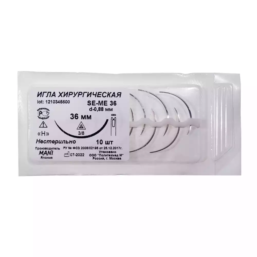 Игла хирургическая многоразовая режущая MANI SE-MЕ 36, 3/8 (0,88х36 мм), Mani, Inc. (ЯПОНИЯ), 10 шт