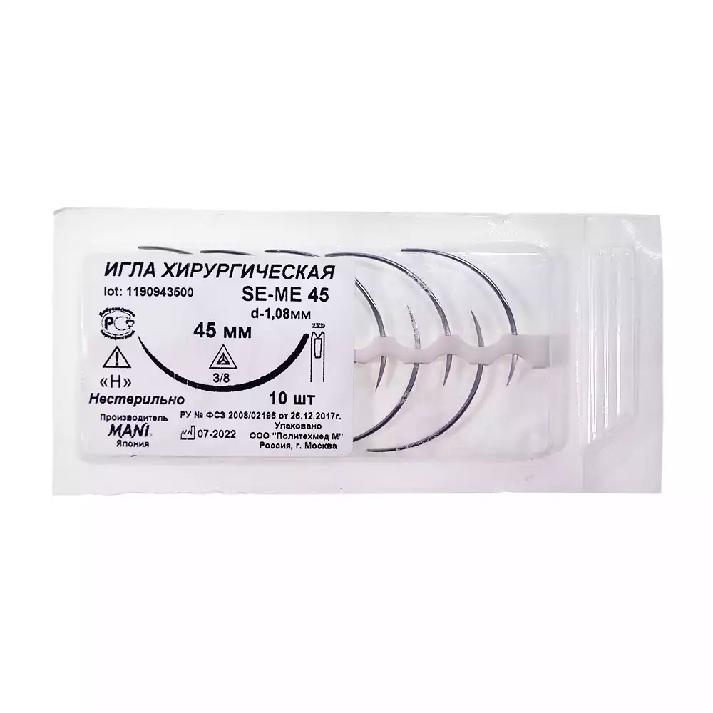 Игла хирургическая многоразовая режущая MANI SE-MЕ 45, 3/8 (1,08*45мм), Mani, Inc. (ЯПОНИЯ), 10 шт