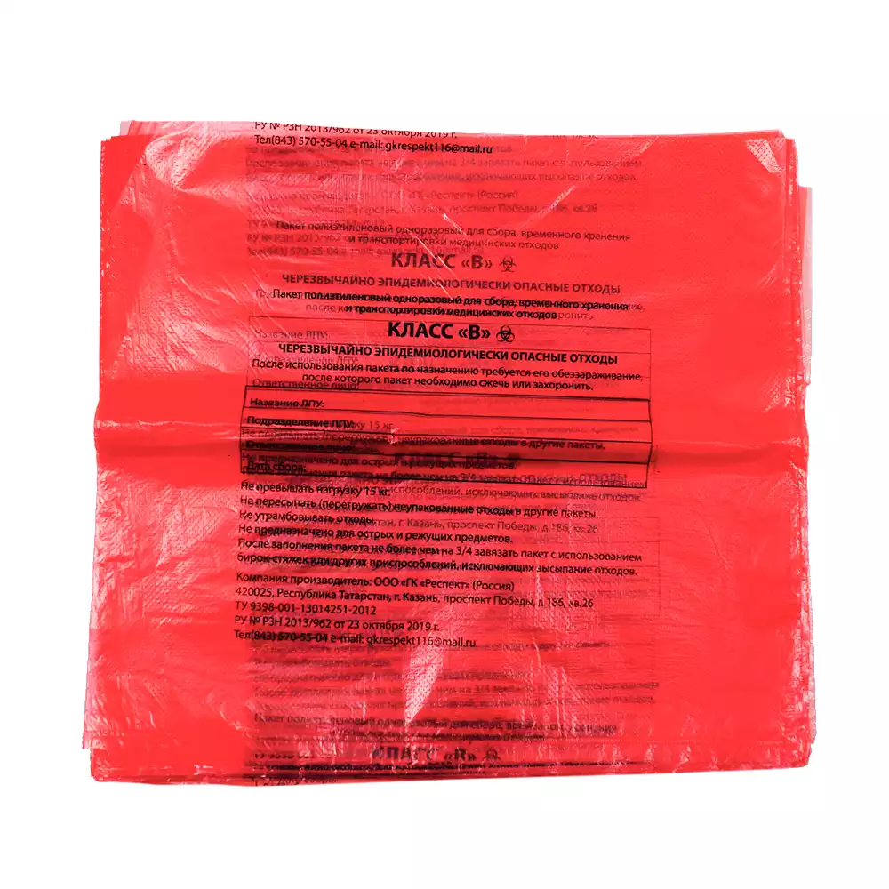 Пакеты для медицинских отходов класса В
