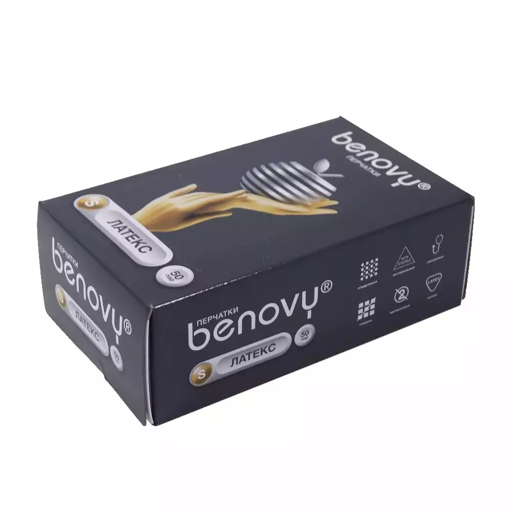 Перчатки BENOVY, размер S, латексные, опудренные, гладкие, нестерильные, манжета с валиком, упаковка 50 парSri Trang Gloves (Thailand) Public Company Limited