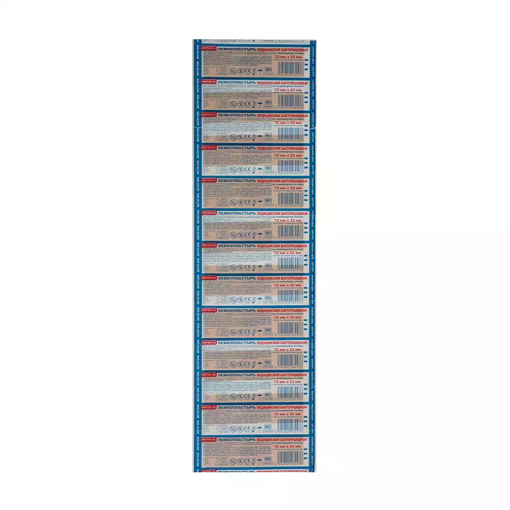 Лейкопластырь Master Uni бактерицидный, размер 1,9см*7,2см, прозрачный, на полимерной основе, Pharmline s.r.o. (КИТАЙ), 10 шт