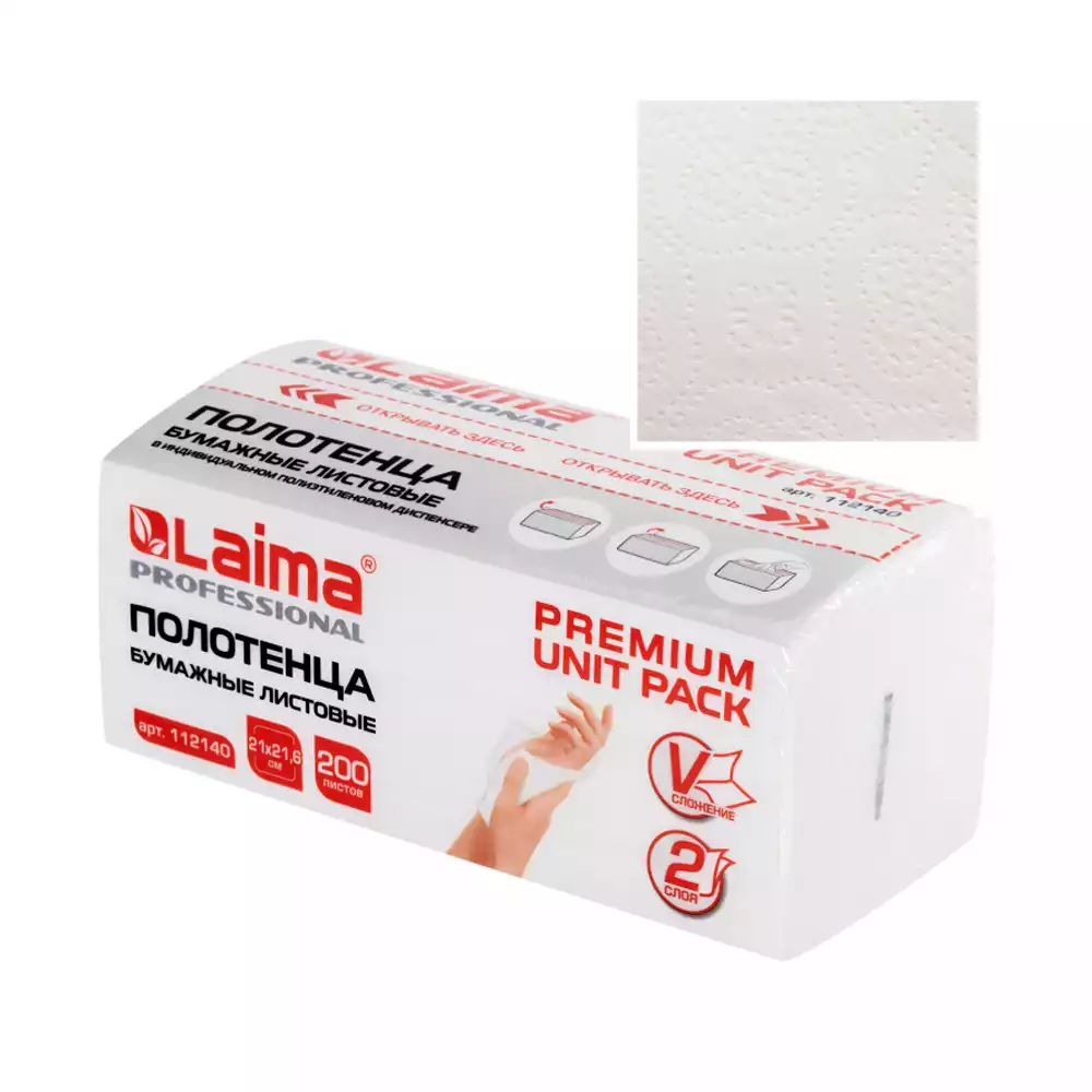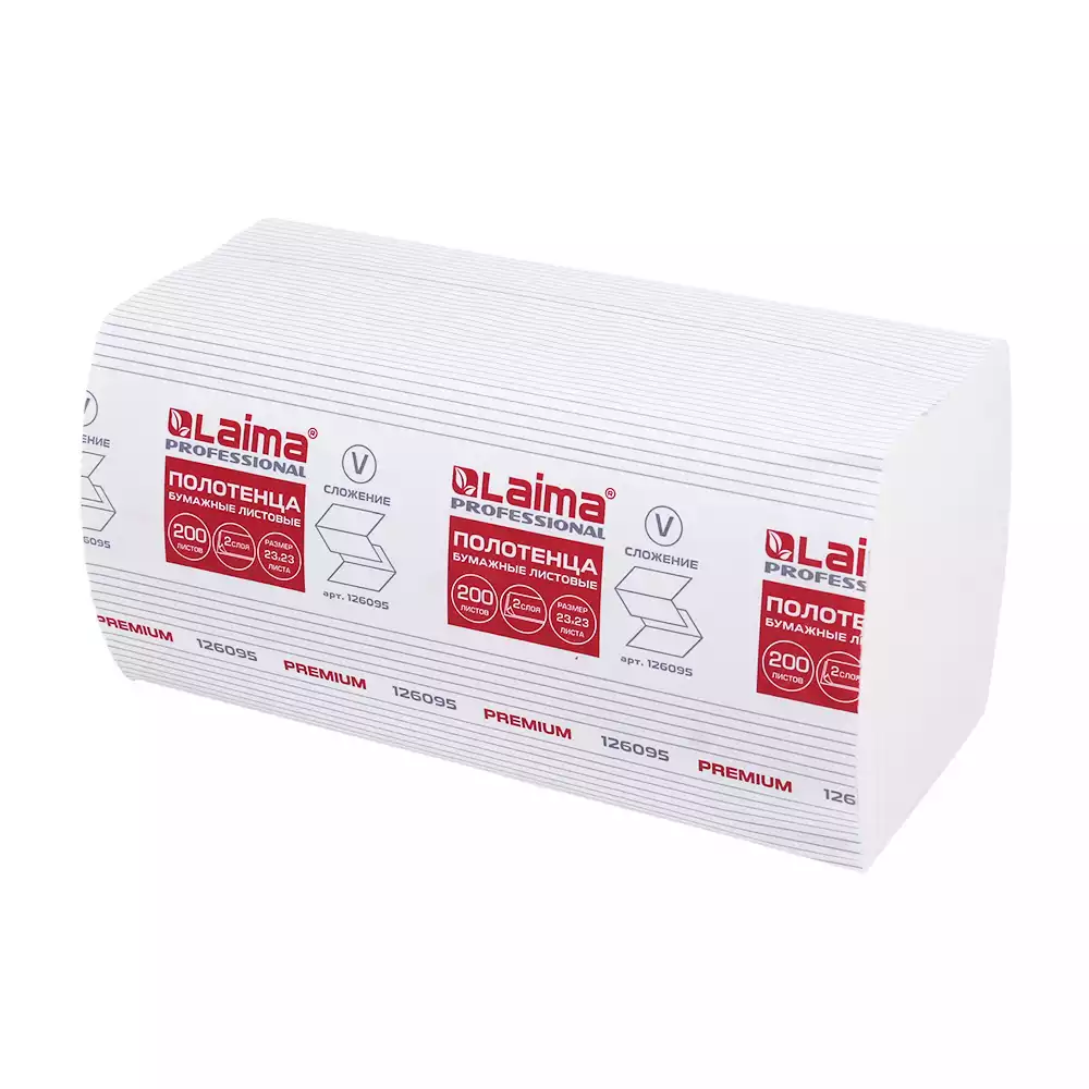 Полотенца бумажные ЛАЙМА ПРЕМИУМ, размер 21*21,6см, 2-х слойные, V-сложение (ZZ), упаковка 200шт, цвет - белый (сырье - 100% целлюлоза), ОАО "СТГ" (РОССИЯ)