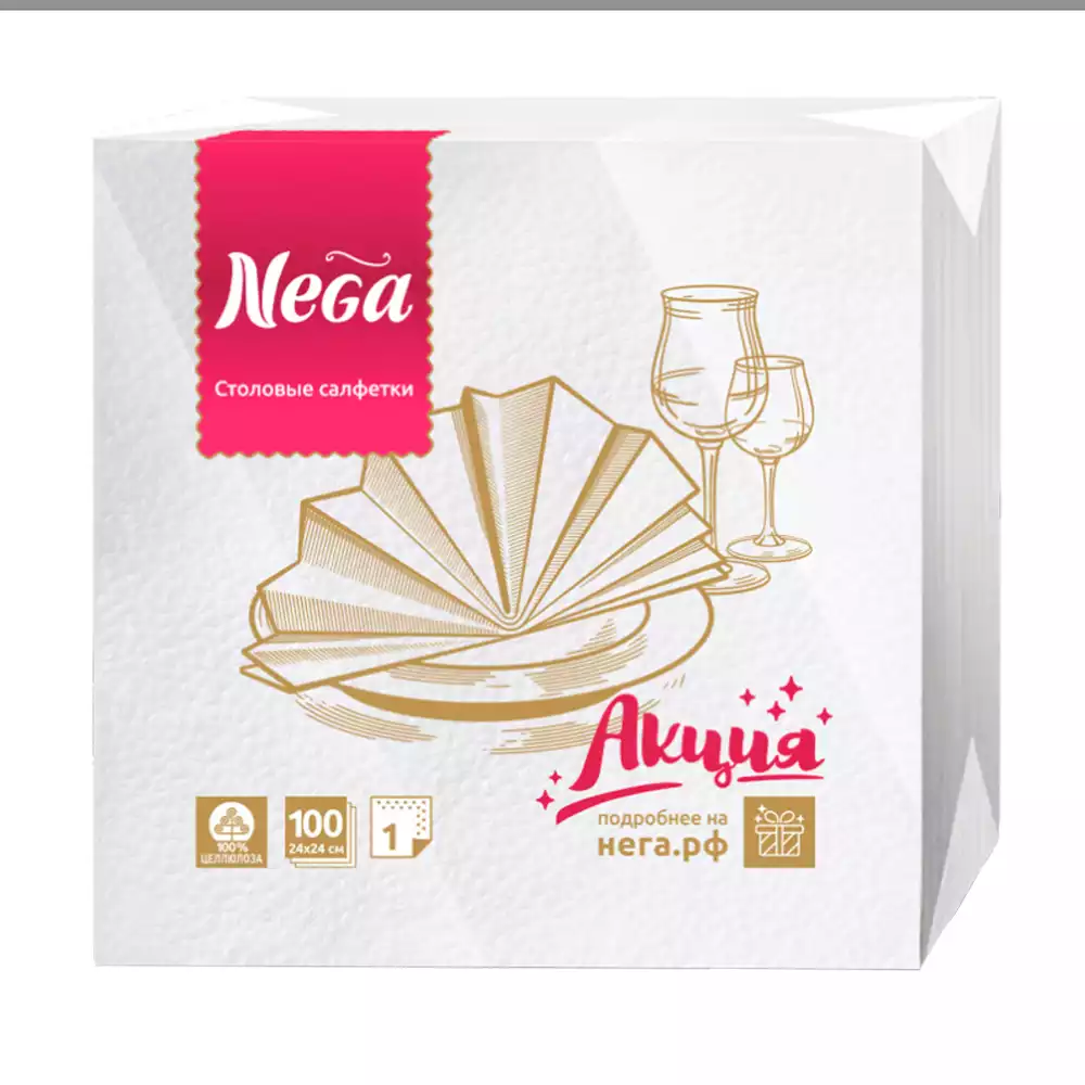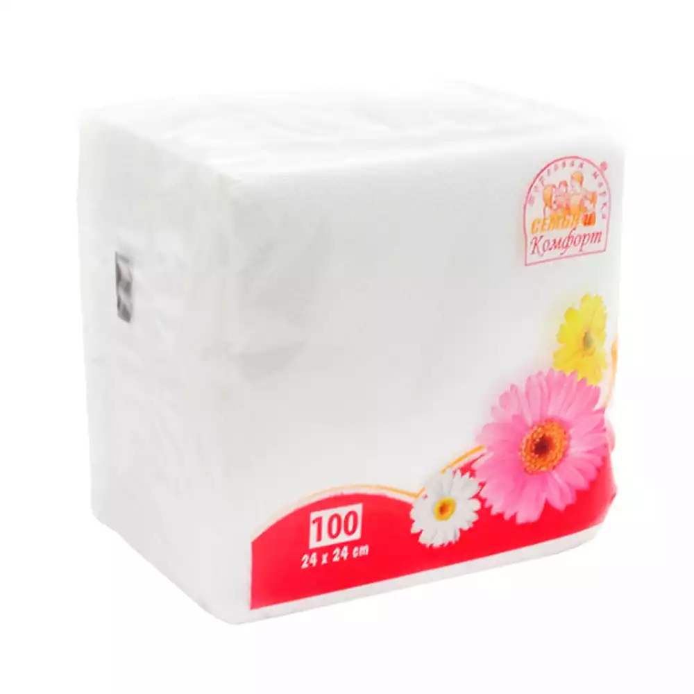 Бумажные салфетки "Семья и Комфорт" однослойные белые, размер 24*24см, пачка 100шт, СЕМЬЯ И КОМФОРТ