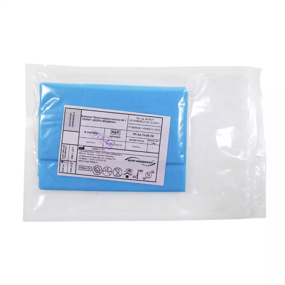 Простыня 70х80см, Спанбонд 35г/м2, хирургическая, стерильная, голубая, Волга Медикал НПП (РОССИЯ)