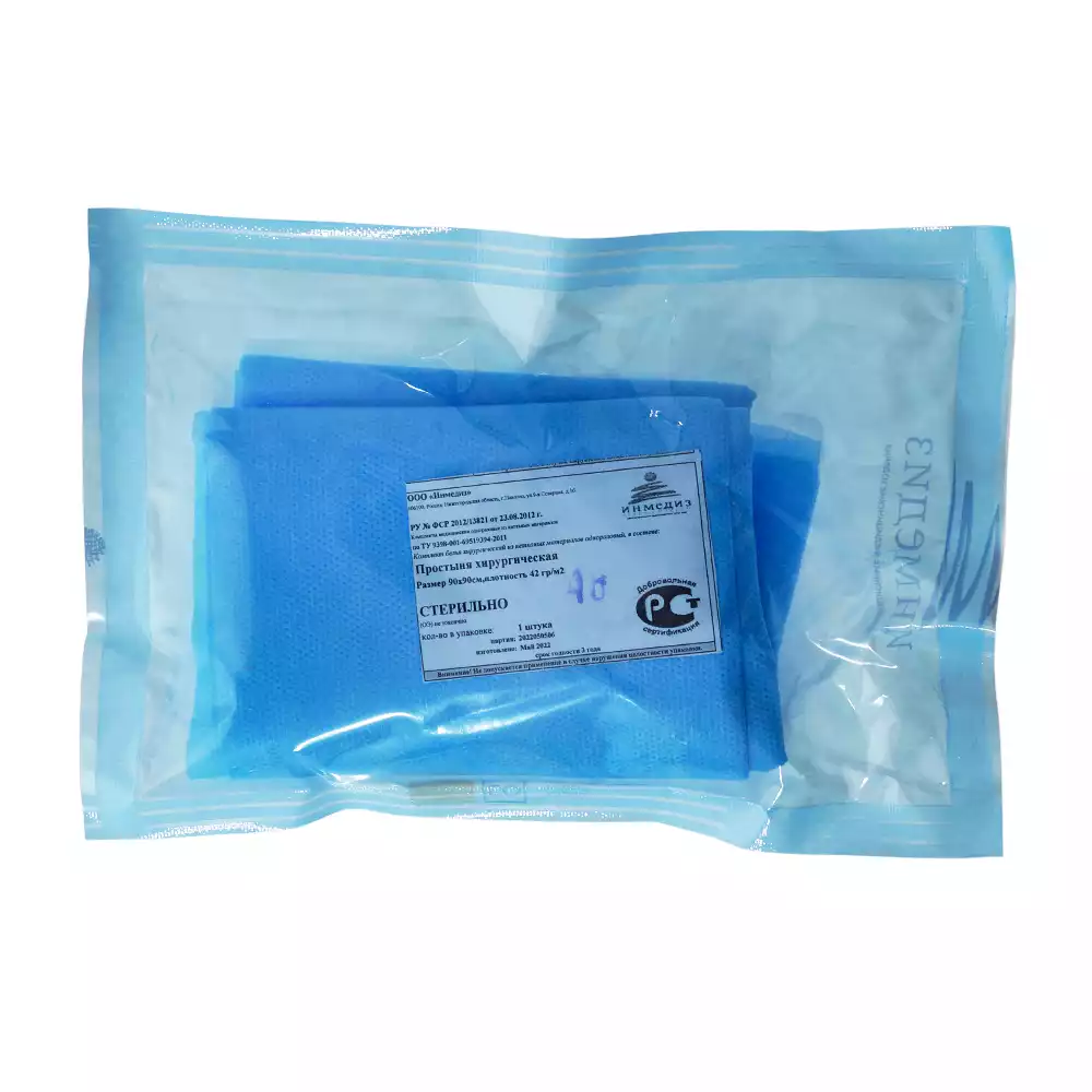 Простыня 90х90см, материал СМС 42г/м2, стерильная, голубая, Инмедиз (РОССИЯ)