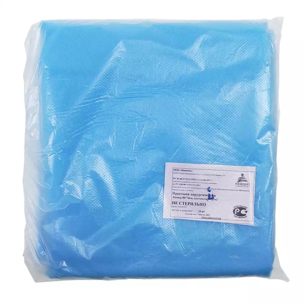 Простыня 80*70см, материал ламинированный СМС 40г/м2, нестерильная, голубая, Инмедиз (РОССИЯ), 10 шт