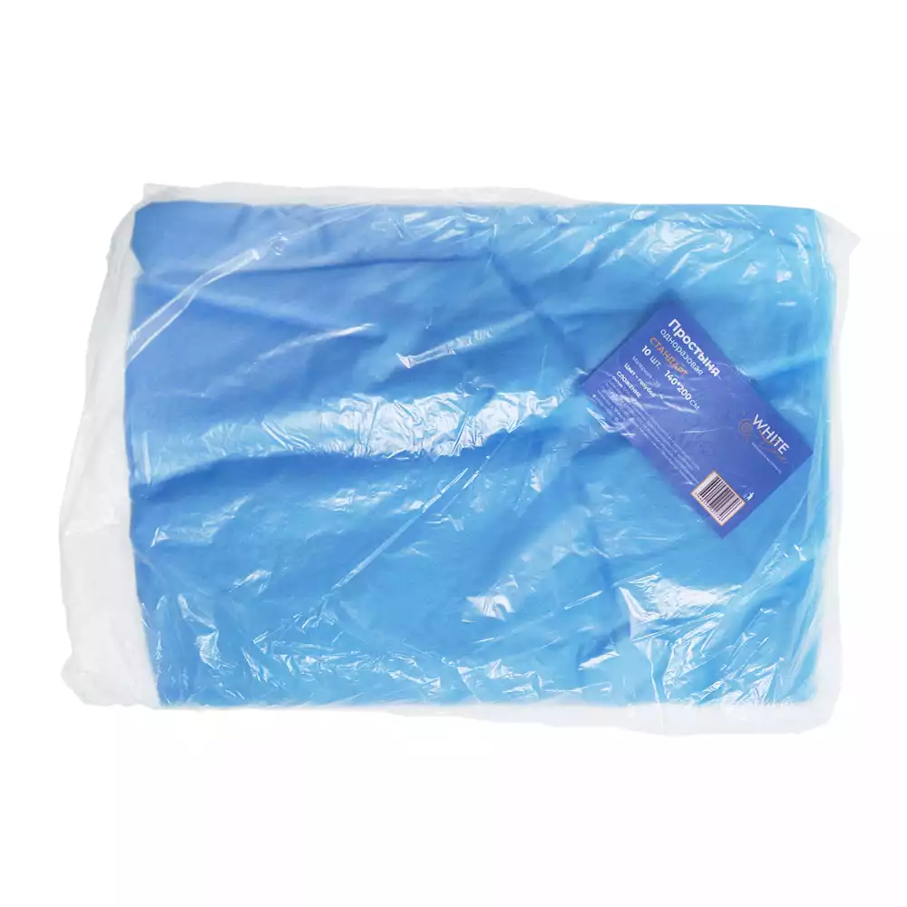 Простыня 140*200см, материал Спанбонд 15-17г/м2, нестерильная, голубая, Белая линия (РОССИЯ)