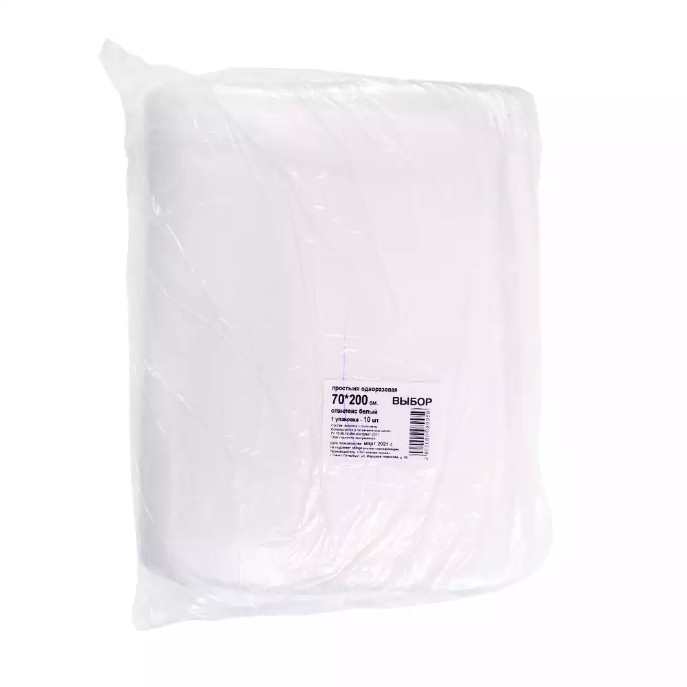 Простыня 70*200см, материал спанлейс 40г/м2 Выбор, нестерильная, белая, Белая линия (РОССИЯ)