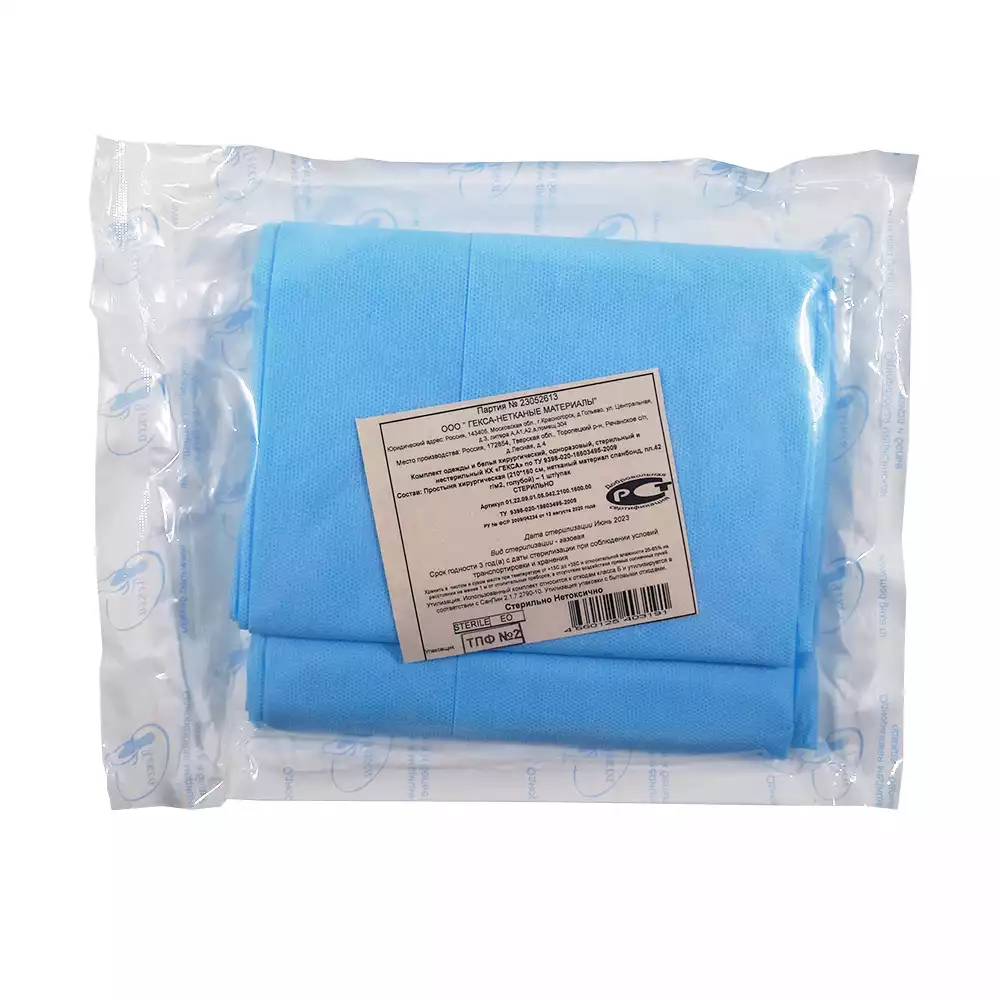 Простыня 140*200см, материал Спанбонд 42г/м2, стерильная, голубая, Гекса-нетканые материалы (РОССИЯ)