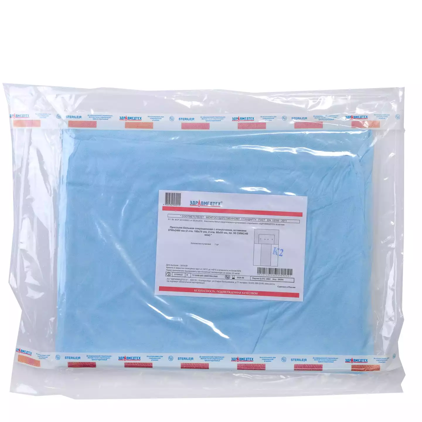 Простыня, размер 80*70см, материал спанбонд ламинированный пл. 40г/м2, нестерильная, голубая, Гекса-нетканые материалы (РОССИЯ)