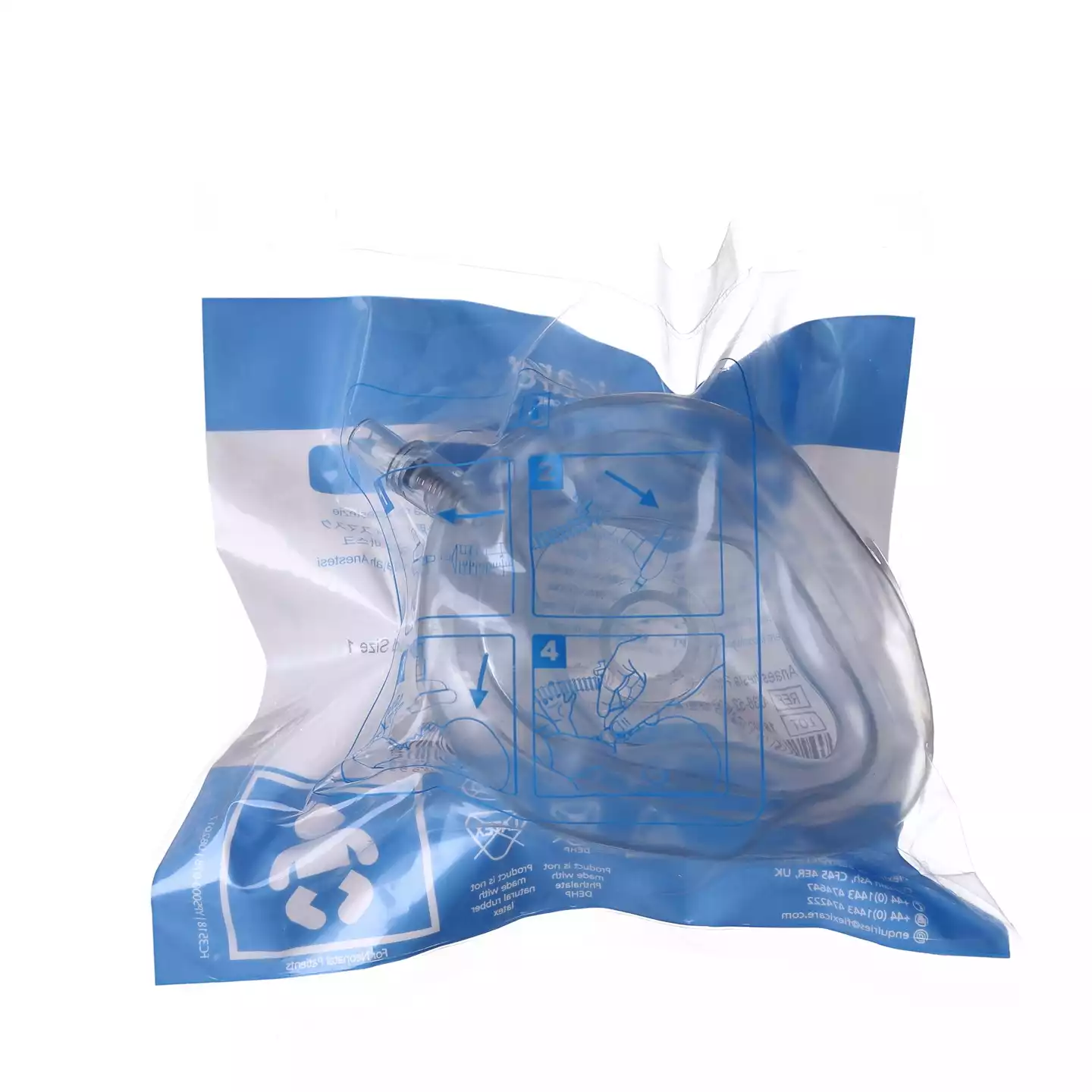 Маска анестезиологическая с валиком и клапаном №5, клинически чистая, синяя, Alba Healthcare LLC (КИТАЙ)