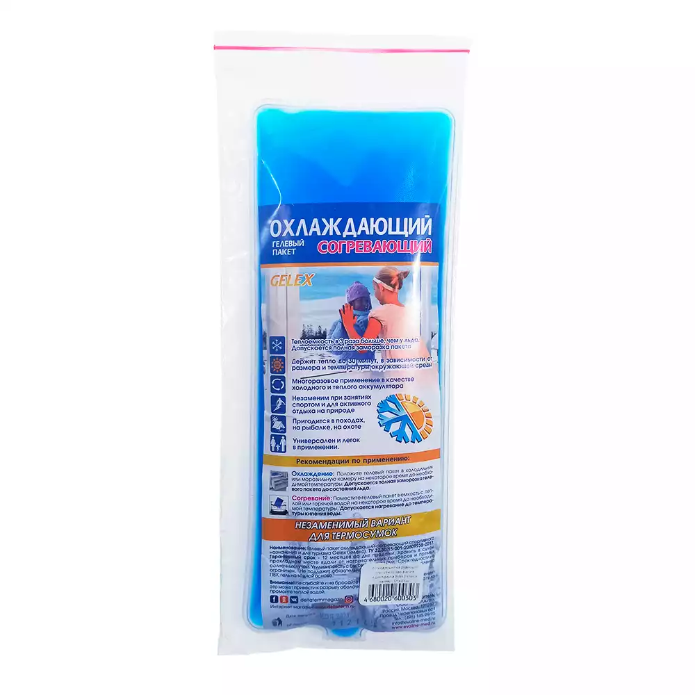 Пакет гелевый охлаждающий-согревающий Gelex, размер XL - 20*15см, Эволайн