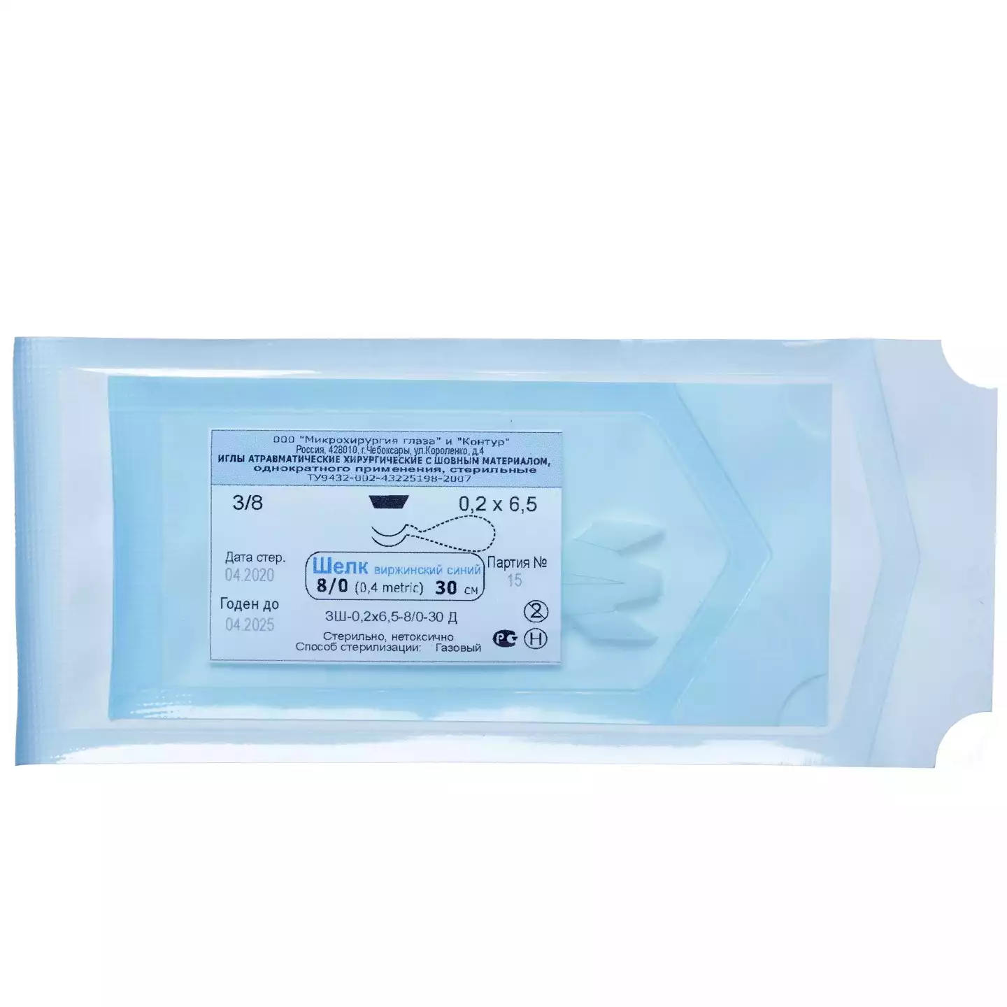 Шелк виржинский синий ЗШ-0,2х6,5-8/0-30Д стерильный, Микрохирургия глаза и Контур (РОССИЯ)