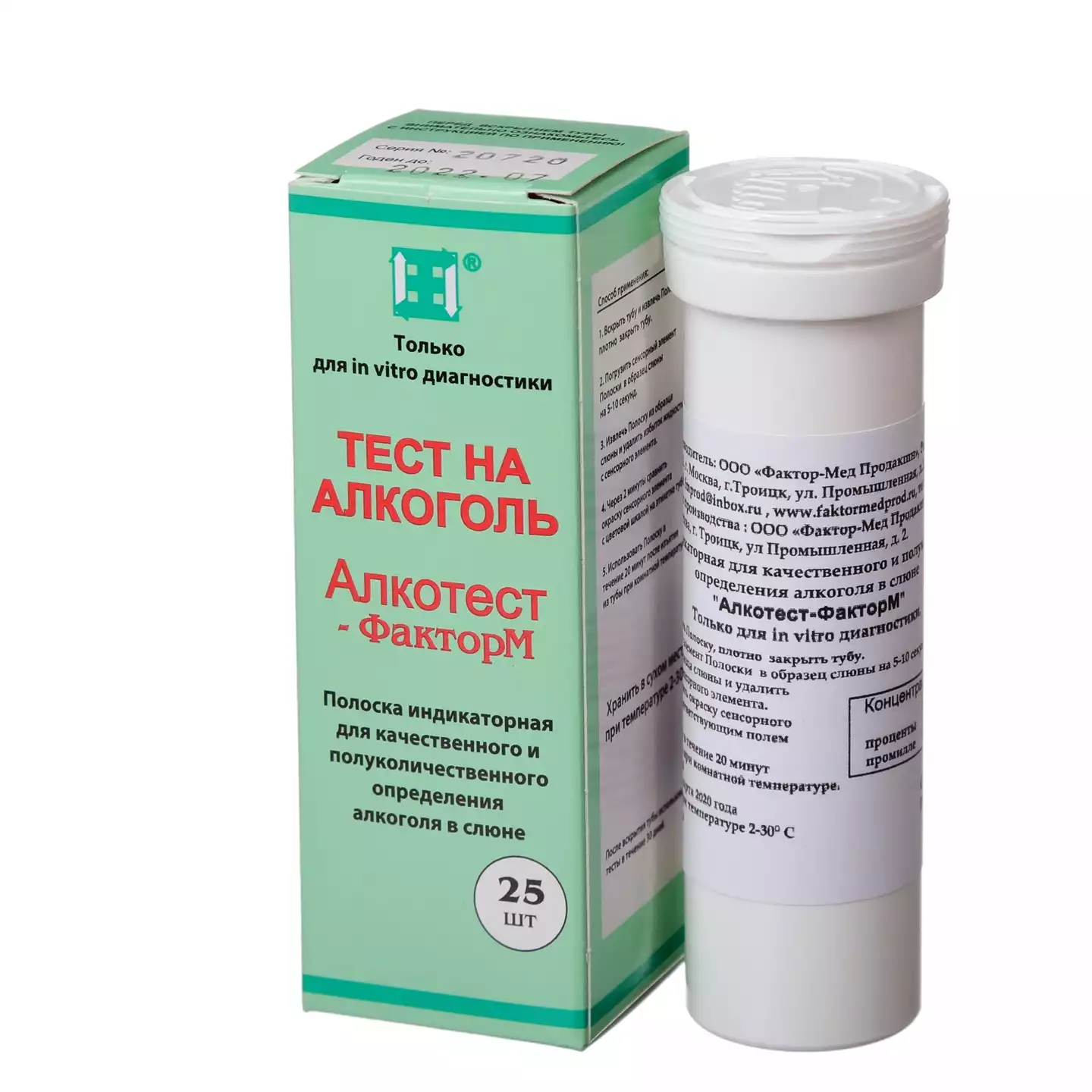 Тест "Алкотест-ФакторМ" на выявление алкоголя, упаковка №25, Фактор-мед Продакшн (РОССИЯ)