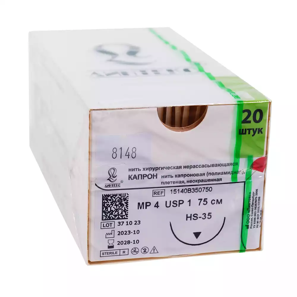 Капрон плетеный 2/0 (MP3) длина нити 75см, игла HS-40, белый, упаковка 25шт, Линтекс (РОССИЯ)