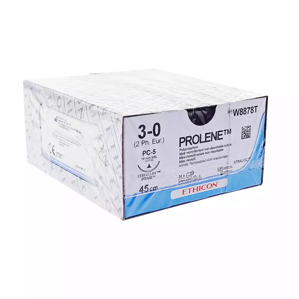 Пролен 3/0, длина 45см, игла режущая 19мм, синий, упаковка 24шт, W8878T, ETHICON (СОЕДИНЕННОЕ КОРОЛЕВСТВО)