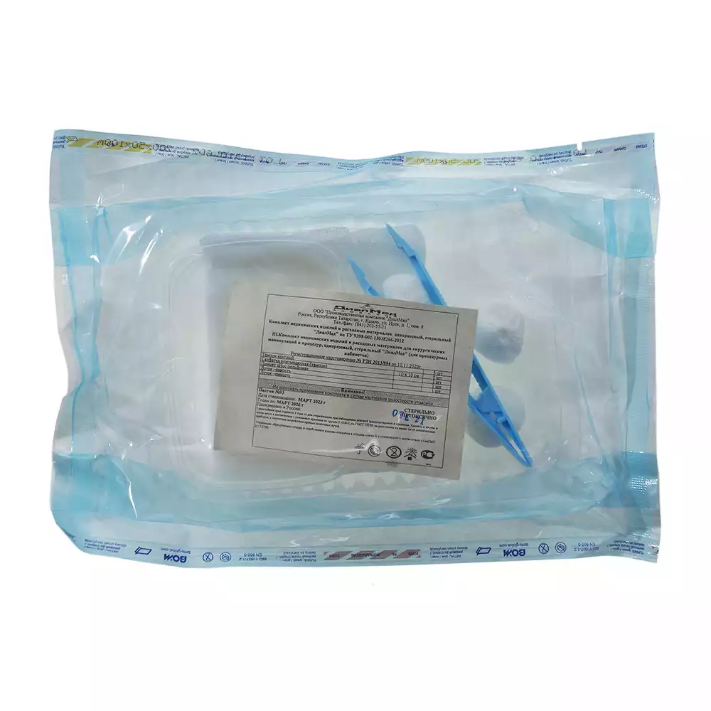 Комплект "ДиалМед" для процедурных кабинетов (10 салфеток, тампоны, лотки, пинцет), одноразовый, стерильный, ДиалМед МК (РОССИЯ)