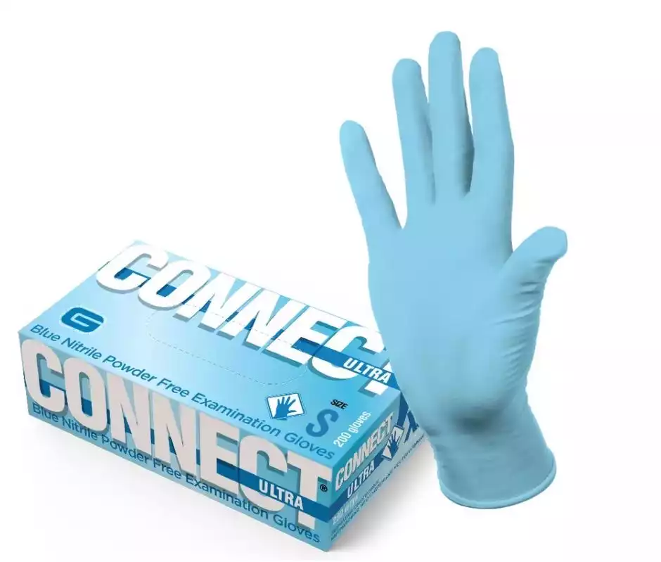 Перчатки медицинские смотровые нитриловые неопудренные нестерильные прочные CONNECT ULTRA (INTCO) размер S цвет голубой упаковка 100 пар, Shandong Intco Medical Products Co.