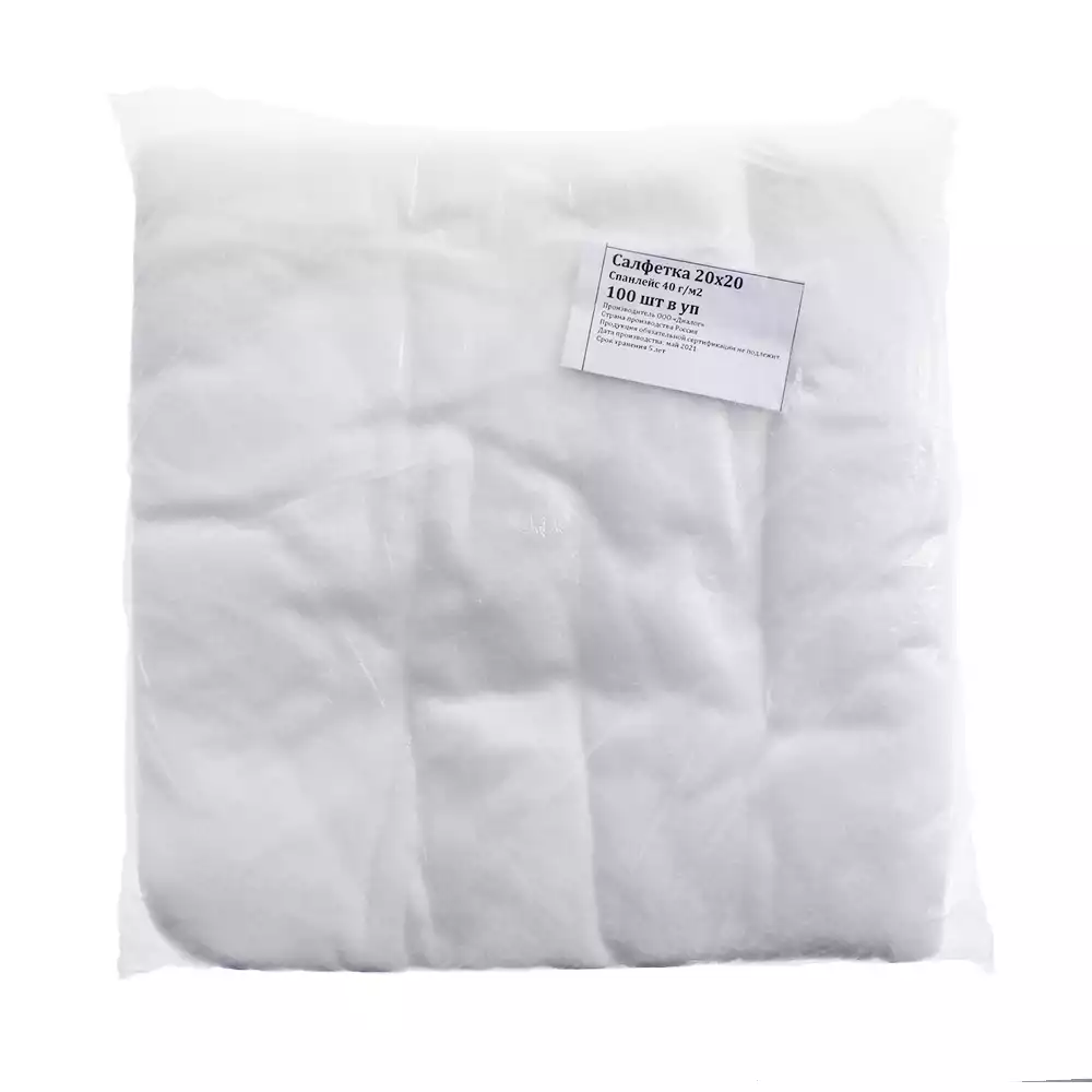 Салфетка 20*20см, материал спанлейс 40г/м2, нестерильная, белаяЭстетика (РОССИЯ), 100 шт