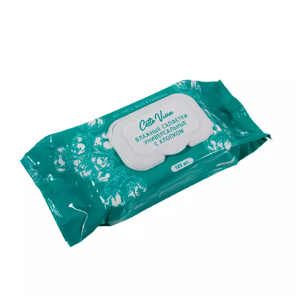Салфетки влажные "Cotto Viva", гигиенические, универсальные, упаковка 120шт, крышкаРусВата (РОССИЯ)