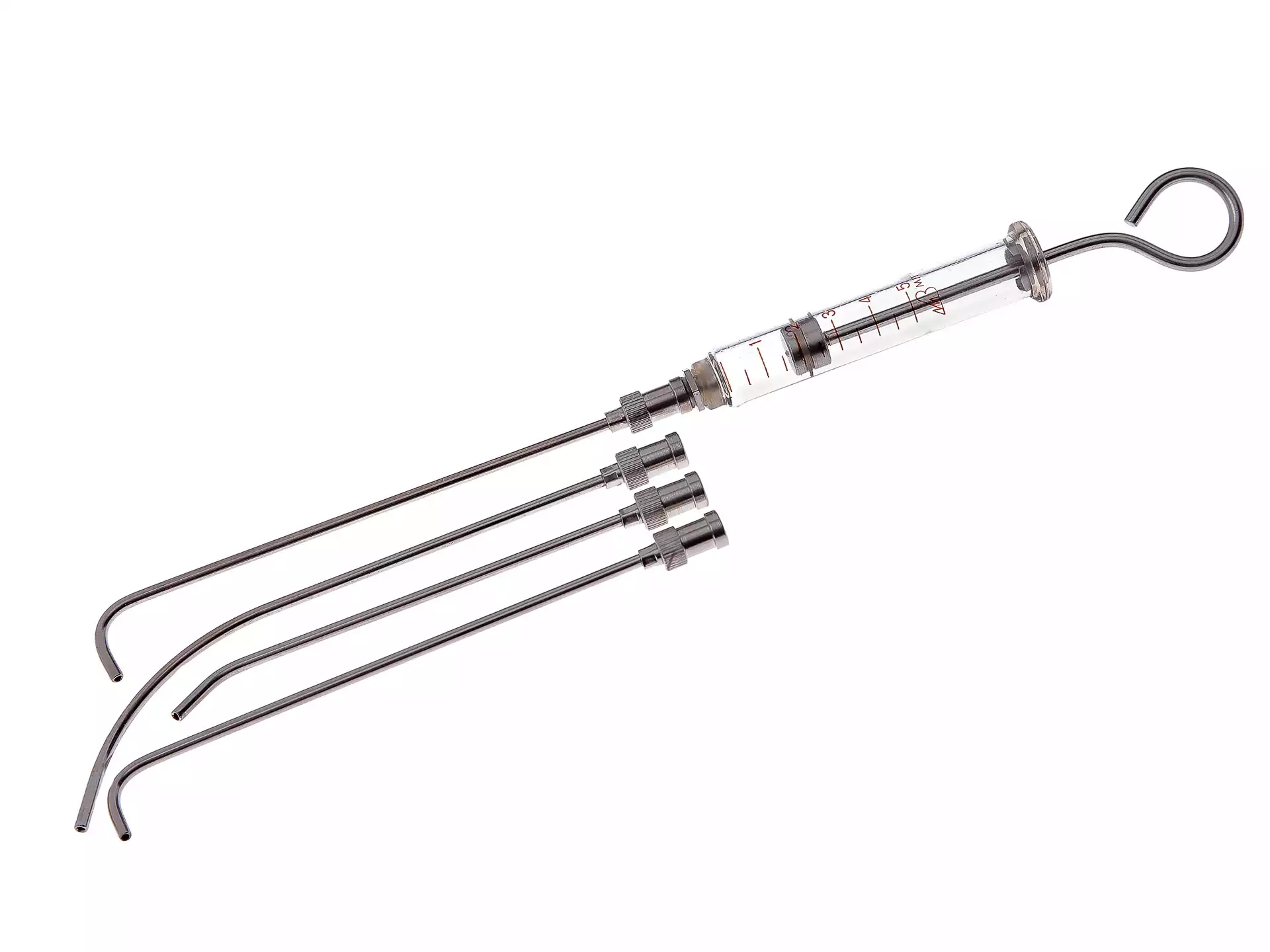 Многоразовые медицинские шприцы используются для введения или извлечения жидкостей из тела. Они обычно состоят из цилиндра с градуировкой, позволяющей точно измерить объем жидкости, и штока с иглой на конце.