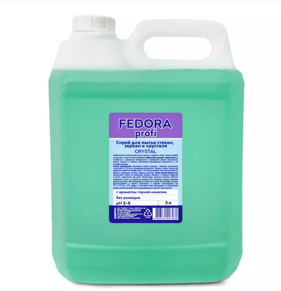 FEDORA Profi Спрей для мытья стекол, зеркал и хрусталя 5л (ПНД), ХИМРОС