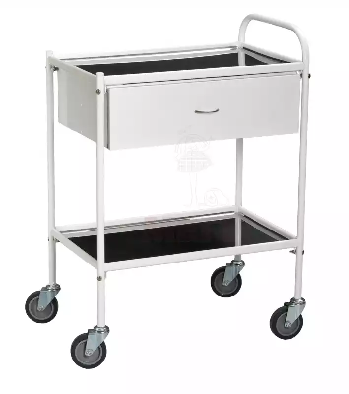 Столик МСК-548 манипуляционный передвижной метал. с двумя полками и выдвижным ящиком, колеса резиновые, размер 645х425х920мм, Медстальконструкция (РОССИЯ)
