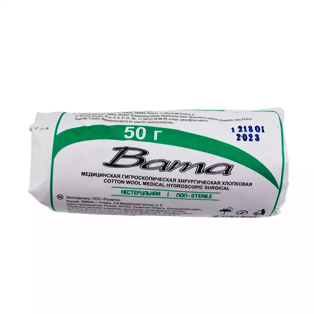 Вата медицинская хирургическая нестерильная 50г, Емельянъ Савостинъ ВФ (РОССИЯ)