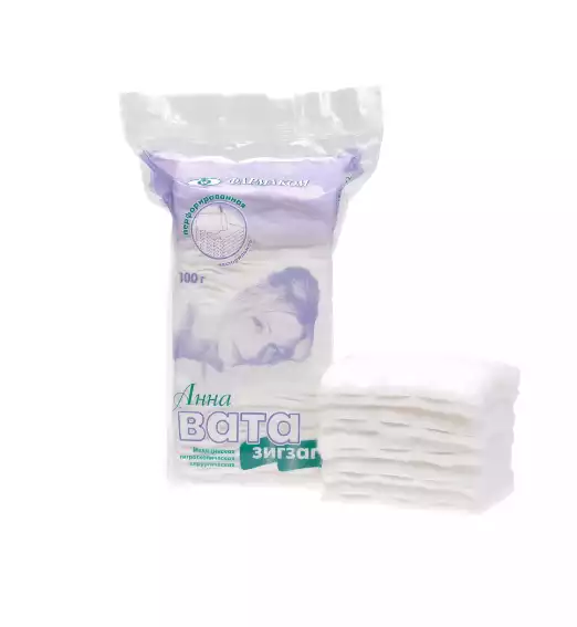 Вата Зиг-Заг 100,0г, хлопковая медицинская хирургическая гигроскопичная нестерильная, Лейко (РОССИЯ)
