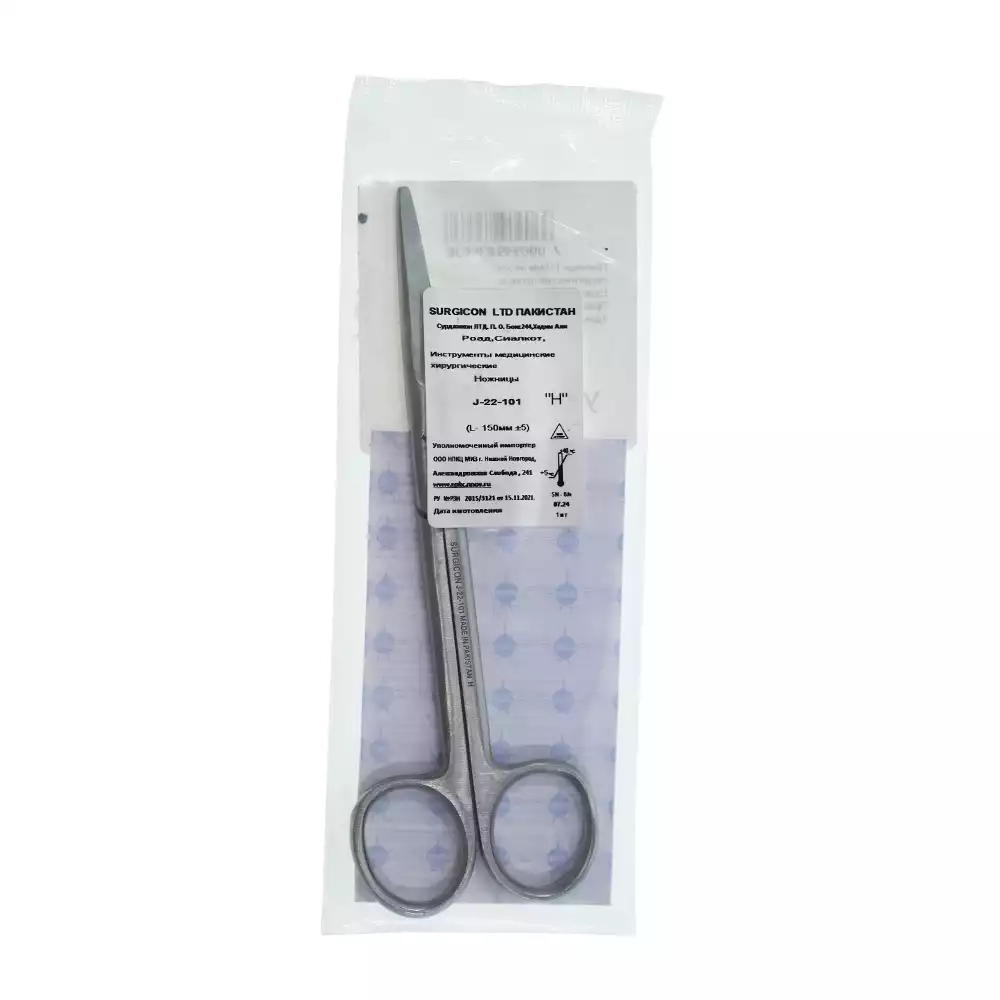 Ножницы J-22-101 хирургические прямые, длина 150мм (аналог Н-59s)