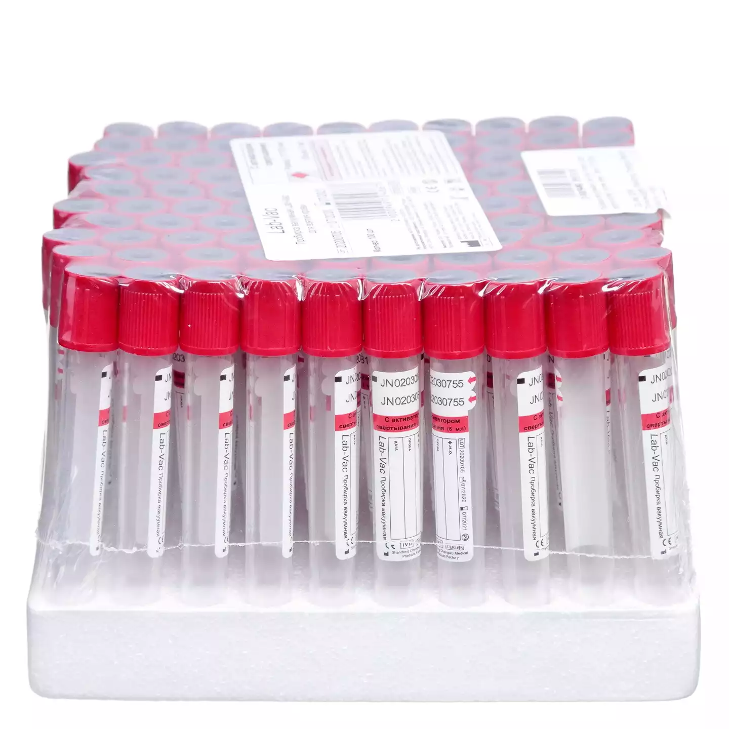 Пробирки Lab-Vac пластиковые, объем 6мл, размер 13*100мм, с активатором свертывания, цвет красный, 100 шт
